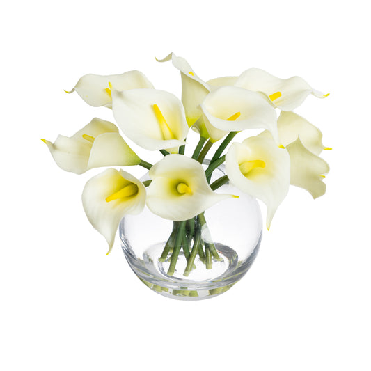 Glamorous Fusion 22cm Calla Lily Arrangement in Fishbowl Vase - Artificial Flower Arrangements and Artificial Plants