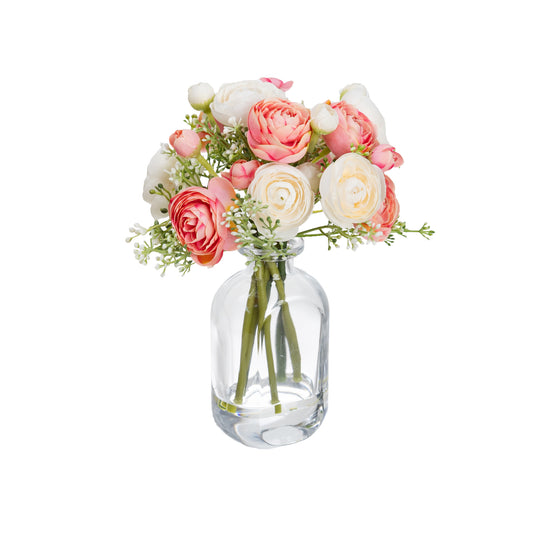 20cm Artificial Ranunculus Mixed Arrangement in Bud Vase