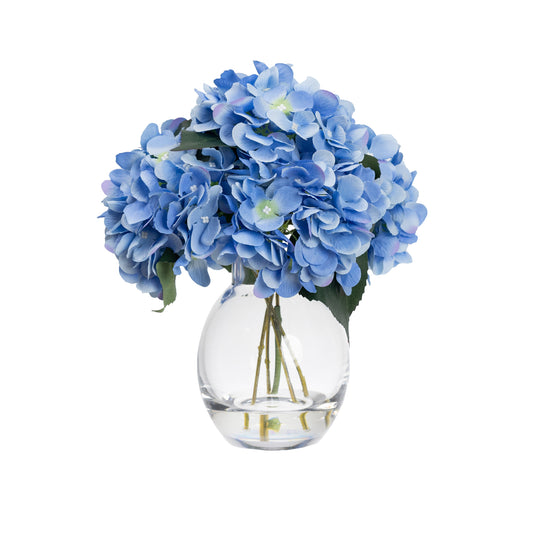 27cm Hydrangea Arrangement in Glass Blue