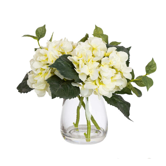 Glamorous Fusion 30cm Hydrangea Arrangement in Glass Vase - Artificial Flower Arrangements and Artificial Plants