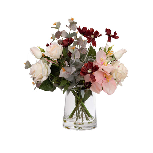 50cm Artificial Rose & Daisy Mixed Arrangement in Glass Purple