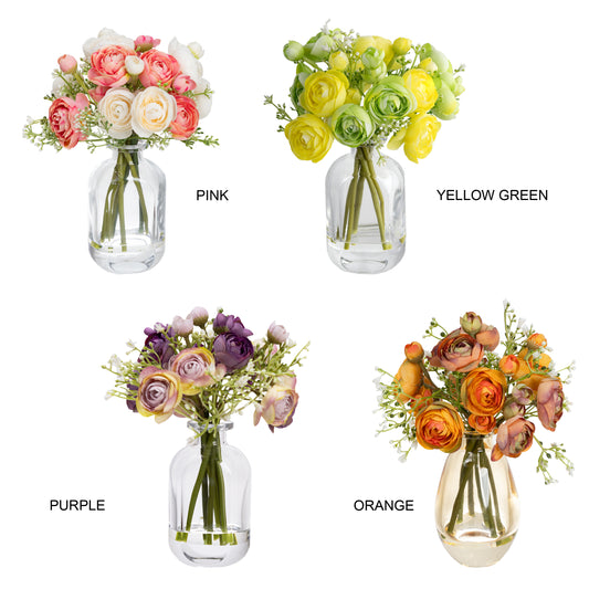 20cm Artificial Ranunculus Mixed Arrangement in Bud Vase