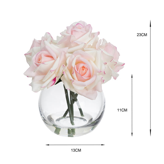 21cm Real Touch Rose in Fishbowl Vase Light Pink